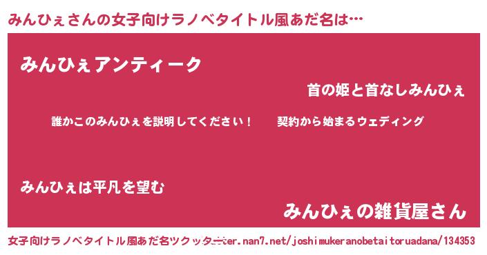 | 意味不明あだ名 | 『ペロリンみんひぇ』『自称みんひぇ』 |