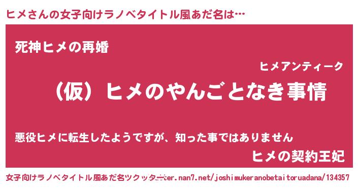 | 男性向けラノベタイトル風あだ名 | 『ヒメの憂鬱』『ノーゲーム・ノーヒメ』 |