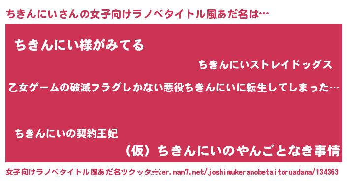 | 意味不明あだ名 | 『住所不定無職ちきんにい(59歳)』 |