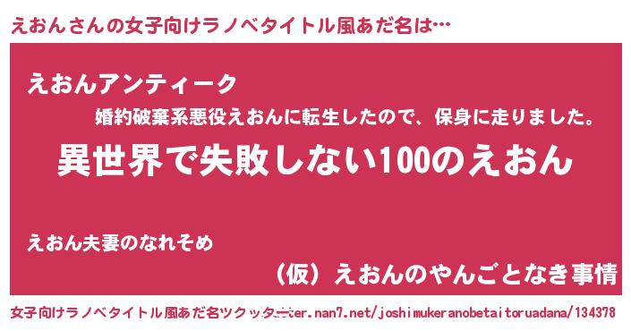 | 男性向けラノベタイトル風あだ名 | 『えおんという概念が存在しない退屈な世界 』 |