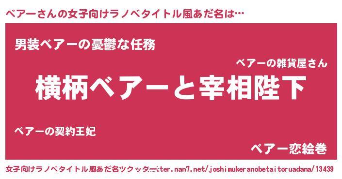 | 男性向けラノベタイトル風あだ名 | 『ベアーに滅ぼされるだけの簡単なお仕事です』 |