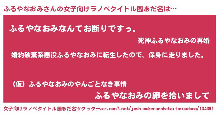 | 男性向けラノベタイトル風あだ名 | 『転生したらふるやなおみだった件』 |