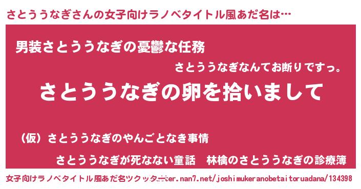 | 男性向けラノベタイトル風あだ名 | 『ダンジョンにさとううなぎを求めるのは間違っているだろうか』 |