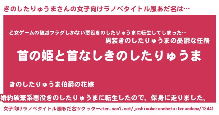 | 意味不明あだ名 | 『住所不定無職きのしたりゅうま(6歳)』 |