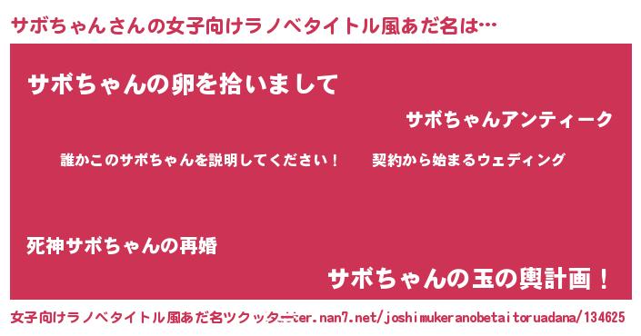 | 胡散臭い通販商品みたいなあだ名 | 『億万長者になれるブレスレット…その名も「サボちゃん」』 |