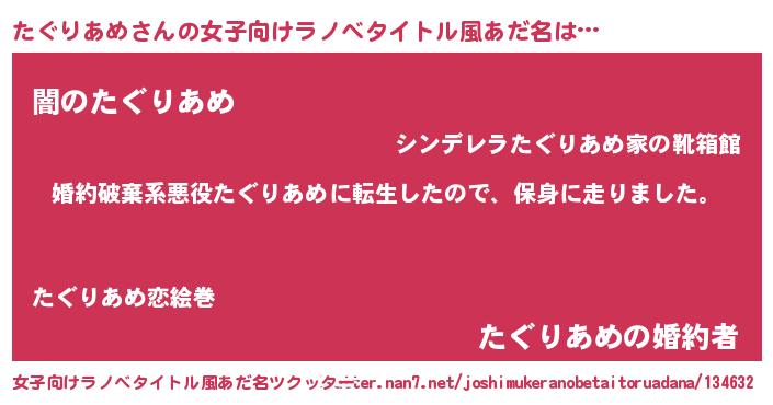 | 男性向けラノベタイトル風あだ名 | 『転生したらたぐりあめだった件』 |