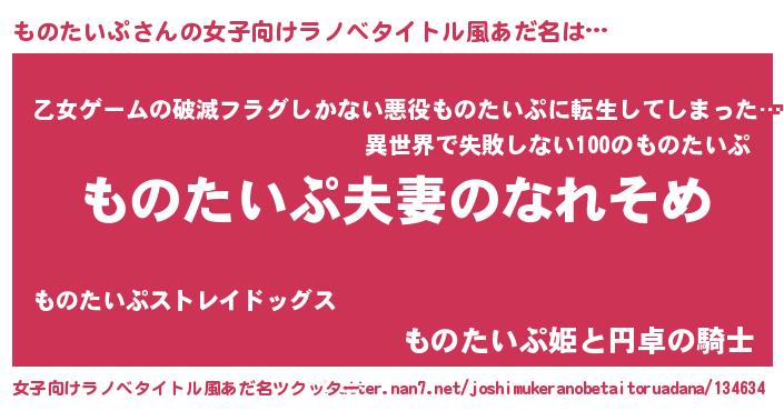 | ヘコむあだ名 | 『ものにゅー』『ものたいぷ(苦笑)』 |