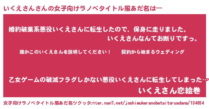| 男性向けラノベタイトル風あだ名 | 『イクエサンアートオンライン』 |
