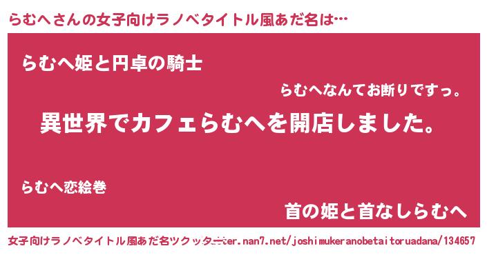 | 男性向けラノベタイトル風あだ名 | 『誰もが恐れるあのらむへが、ぼくの専属メイドになるようです。』 |