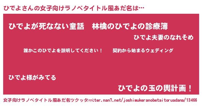 | 男性向けラノベタイトル風あだ名 | 『ヒデヨアートオンライン』 |