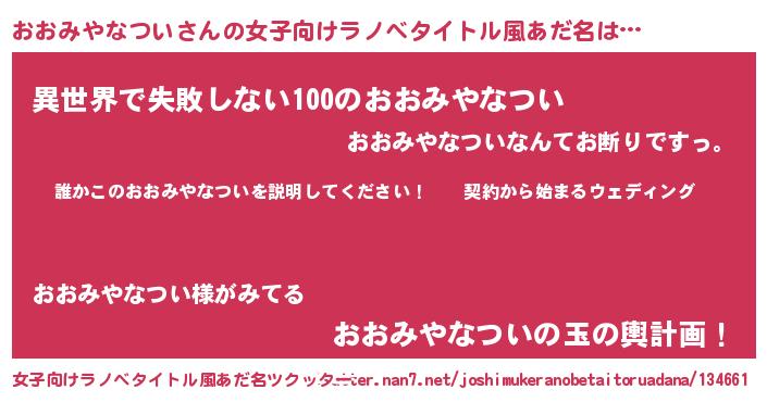 | 男性向けラノベタイトル風あだ名 | 『オオミヤナツイアートオンライン』 |