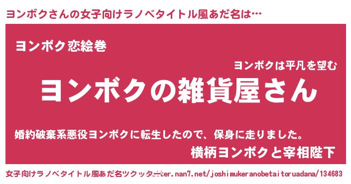 | 男性向けラノベタイトル風あだ名 | 『やはりヨンボクの青春ラブコメはまちがっている 』 |
