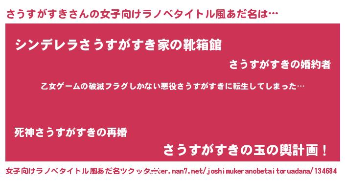 | 男性向けラノベタイトル風あだ名 | 『魔弾の王とさうすがすき』 |