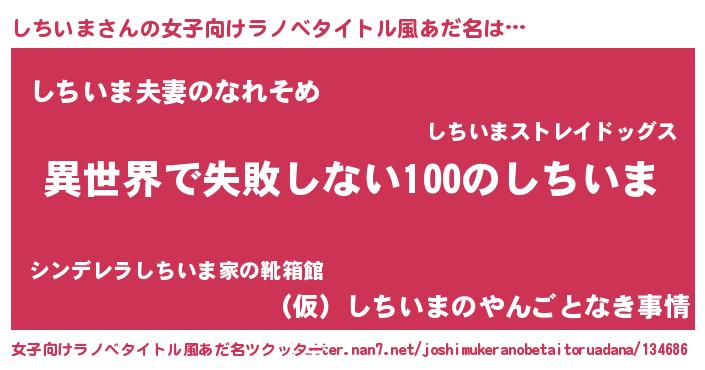 | ヒーロー風カッコイイあだ名 | 『ネオシチイマ』『正義の使者しちいま』 |