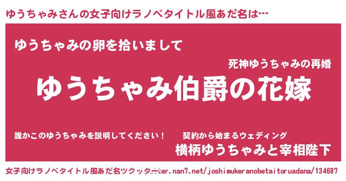 | 欧米人風あだ名 | 『ゆうちゃみクリステル』 |