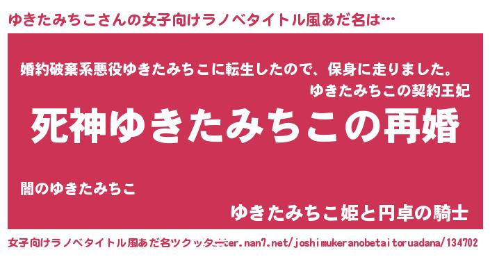 | ヘコむあだ名 | 『ゆきもー』『ゆきたみちこ(苦笑)』 |