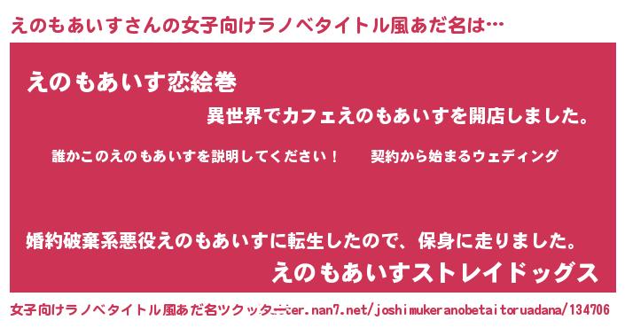 | 男性向けラノベタイトル風あだ名 | 『エノモアイスアートオンライン』 |