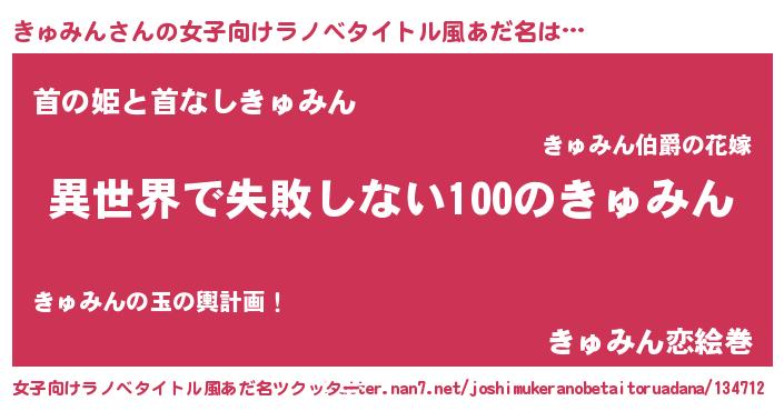| 男性向けラノベタイトル風あだ名 | 『きゅみんという概念が存在しない退屈な世界 』 |