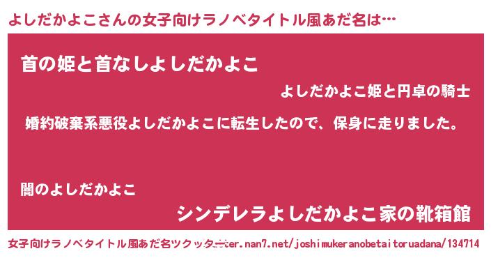 | 男性向けラノベタイトル風あだ名 | 『ヨシダカヨコスレイヤー』 |