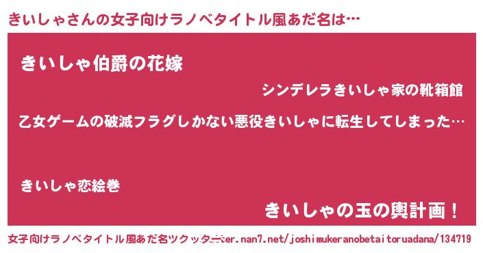 | 男性向けラノベタイトル風あだ名 | 『この素晴らしい世界にきいしゃを!』 |