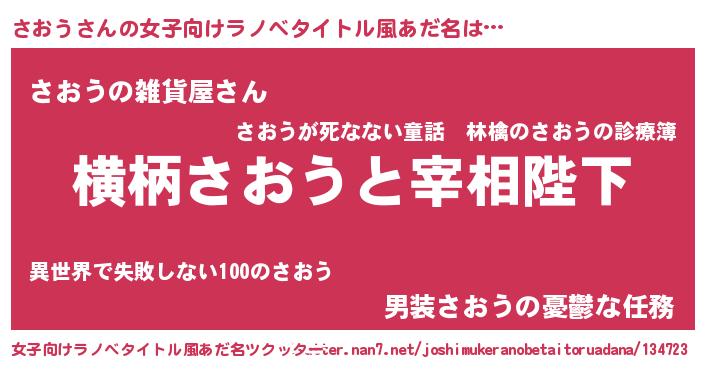 | 男性向けラノベタイトル風あだ名 | 『さおうに滅ぼされるだけの簡単なお仕事です』 |