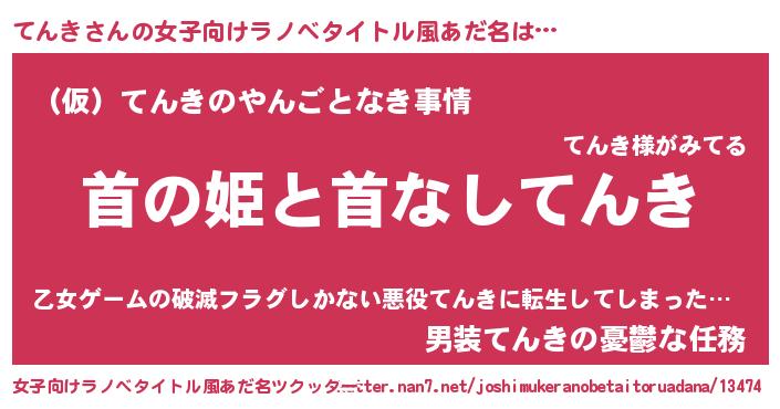 | 胡散臭い通販商品みたいなあだ名 | 『必ず成功するブレスレット…その名も「てんき」』 |