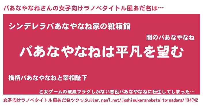 | 胡散臭い通販商品みたいなあだ名 | 『信頼と実績のサプリメント…その名も「バあなやなね」』 |