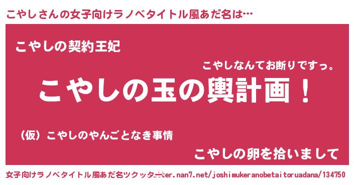 | 胡散臭い通販商品みたいなあだ名 | 『来世でも幸せになれる健康食品…その名も「こやし」』 |