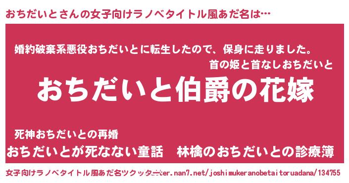 | 男性向けラノベタイトル風あだ名 | 『やはりおちだいとの青春ラブコメはまちがっている 』 |