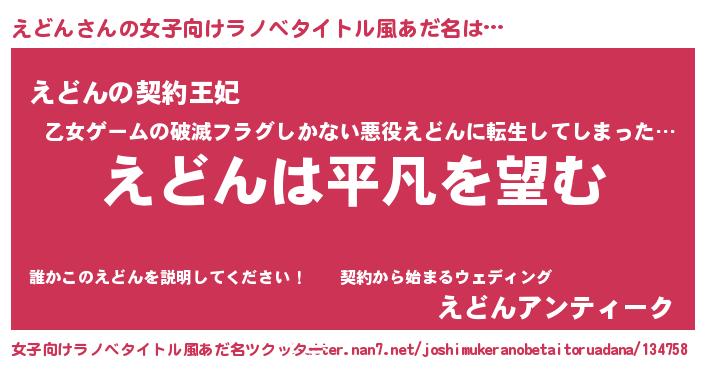 | 男性向けラノベタイトル風あだ名 | 『ダンジョンにえどんを求めるのは間違っているだろうか』 |