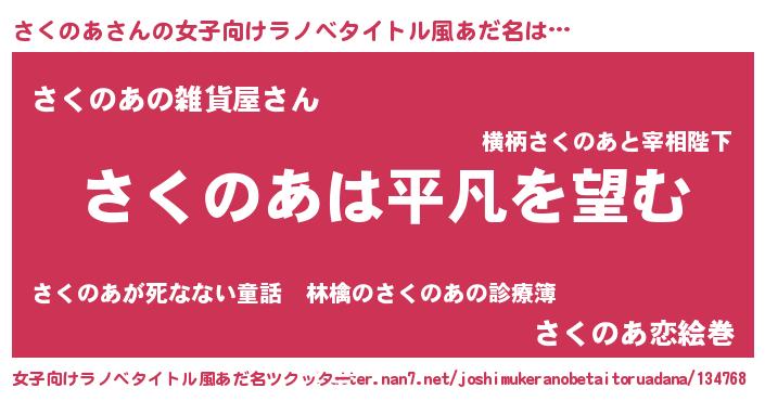 | 男性向けラノベタイトル風あだ名 | 『ダンジョンにさくのあを求めるのは間違っているだろうか』 |