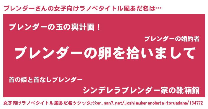 | 男性向けラノベタイトル風あだ名 | 『ブレンダーの嫁は女の子じゃないと思った?』 |