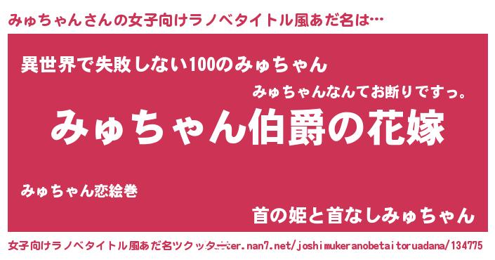 | 男性向けラノベタイトル風あだ名 | 『うちの娘の為ならば、俺はもしかしたらみゅちゃんも倒せるかもしれない。』 |