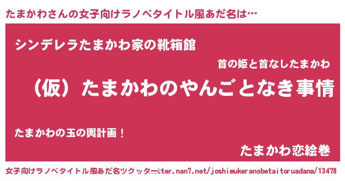| 男性向けラノベタイトル風あだ名 | 『たまかわの憂鬱』 |