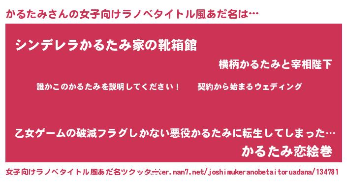 | 胡散臭い通販商品みたいなあだ名 | 『億万長者になれる霊験あらたかなお札…その名も「かるたみ」』 |