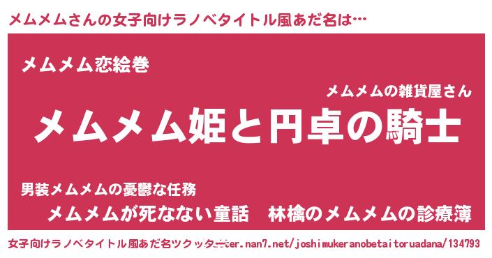 | 男性向けラノベタイトル風あだ名 | 『メムメムアートオンライン』 |