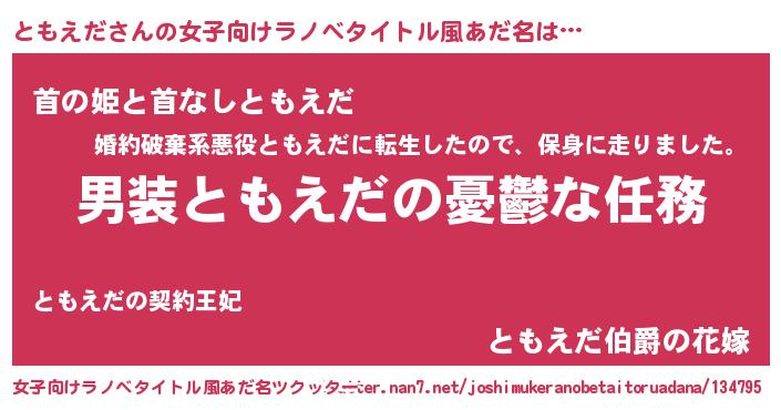 | 胡散臭い通販商品みたいなあだ名 | 『運命の人と巡り会える高級そうな絵画…その名も「ともえだ」』 |