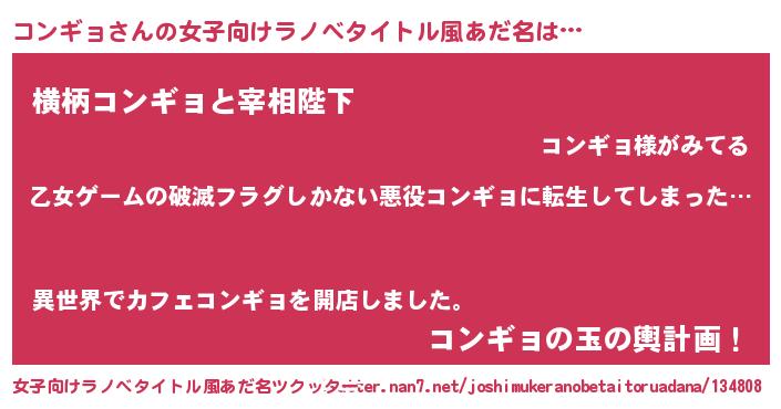 | 男性向けラノベタイトル風あだ名 | 『魔弾の王とコンギョ』 |