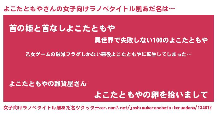 | 意味不明あだ名 | 『住所不定無職よこたともや(56歳)』 |
