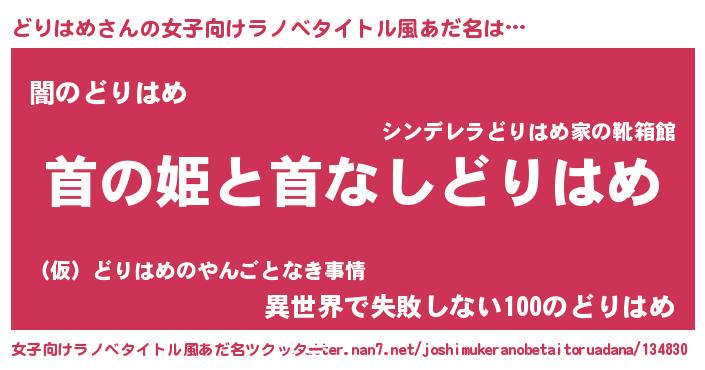 | ヘコむあだ名 | 『どりはめ(遠い目)』『どりにー』 |