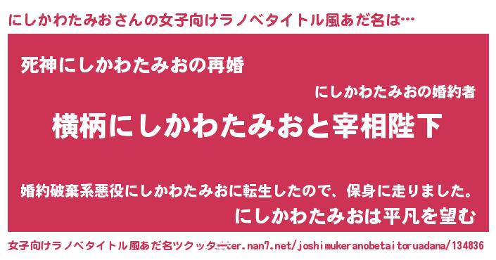 | 欧米人風あだ名 | 『アンジェラ・にしかわたみお』 |