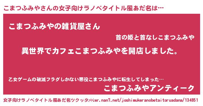 | 男性向けラノベタイトル風あだ名 | 『誰もが恐れるあのこまつふみやが、ぼくの専属メイドになるようです。』 |