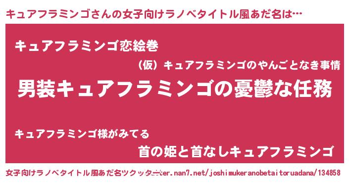 男性向けラノベタイトル風あだ名 | 『うちのキュアフラミンゴが世界を掌握している!』 |