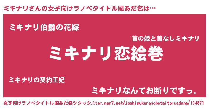 | 男性向けラノベタイトル風あだ名 | 『ノーゲーム・ノーミキナリ』 |