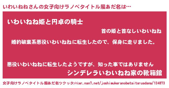 | 男性向けラノベタイトル風あだ名 | 『イワイネネスレイヤー』 |