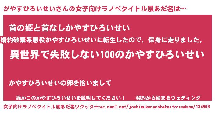 | 男性向けラノベタイトル風あだ名 | 『かやすひろいせいという概念が存在しない退屈な世界 』 |