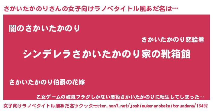 | 意味不明あだ名 | 『自称さかいたかのり』 |