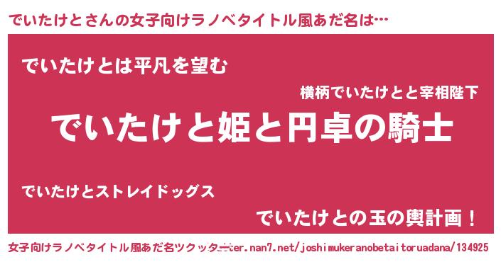| 男性向けラノベタイトル風あだ名 | 『でいたけとの憂鬱』 |