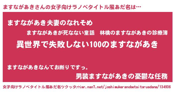 | 男性向けラノベタイトル風あだ名 | 『ますながあきという概念が存在しない退屈な世界 』 |