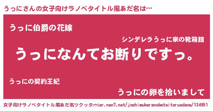 | ヘコむあだ名 | 『牛乳』『うっお』『うっに(遠い目)』 |